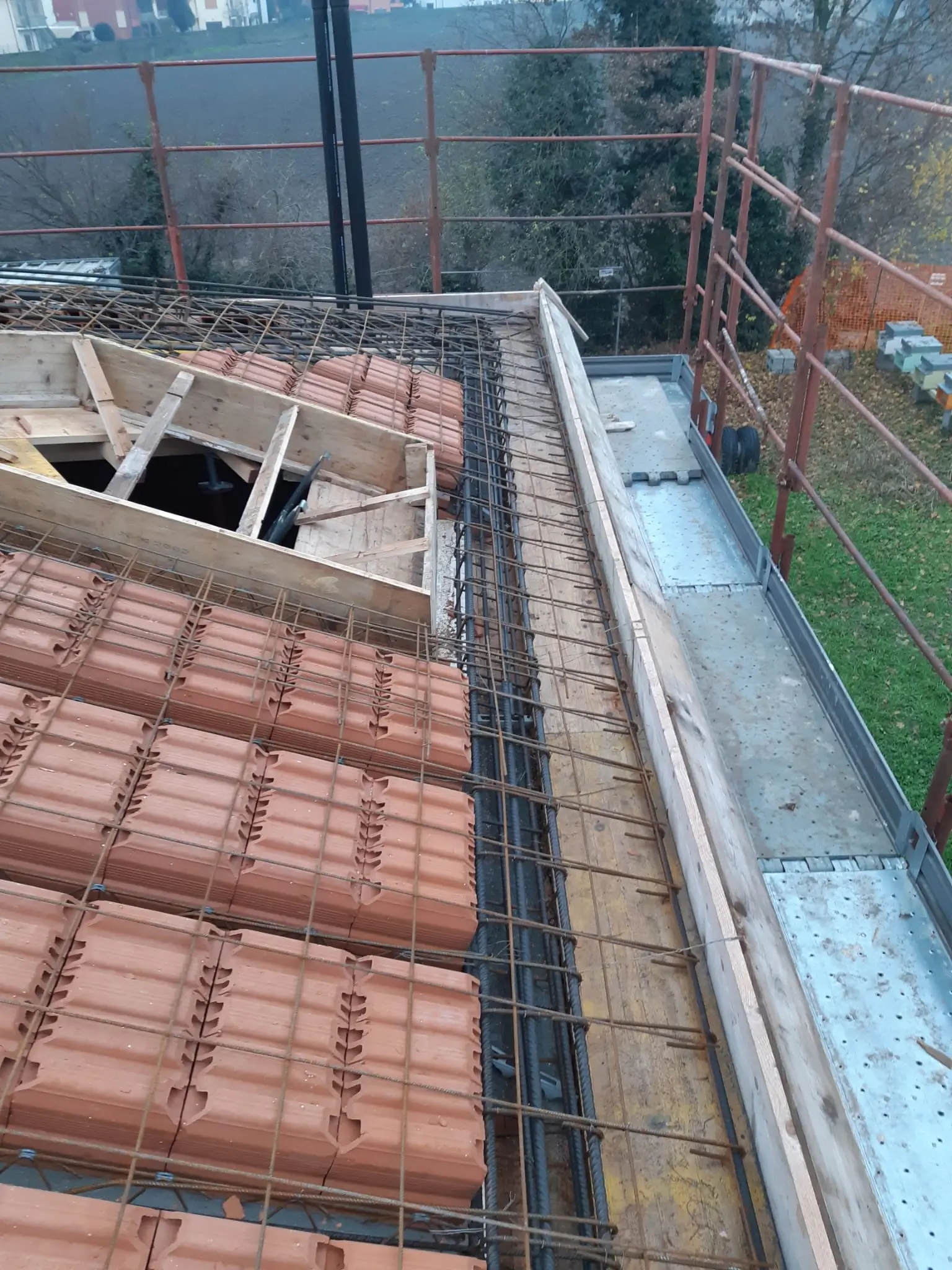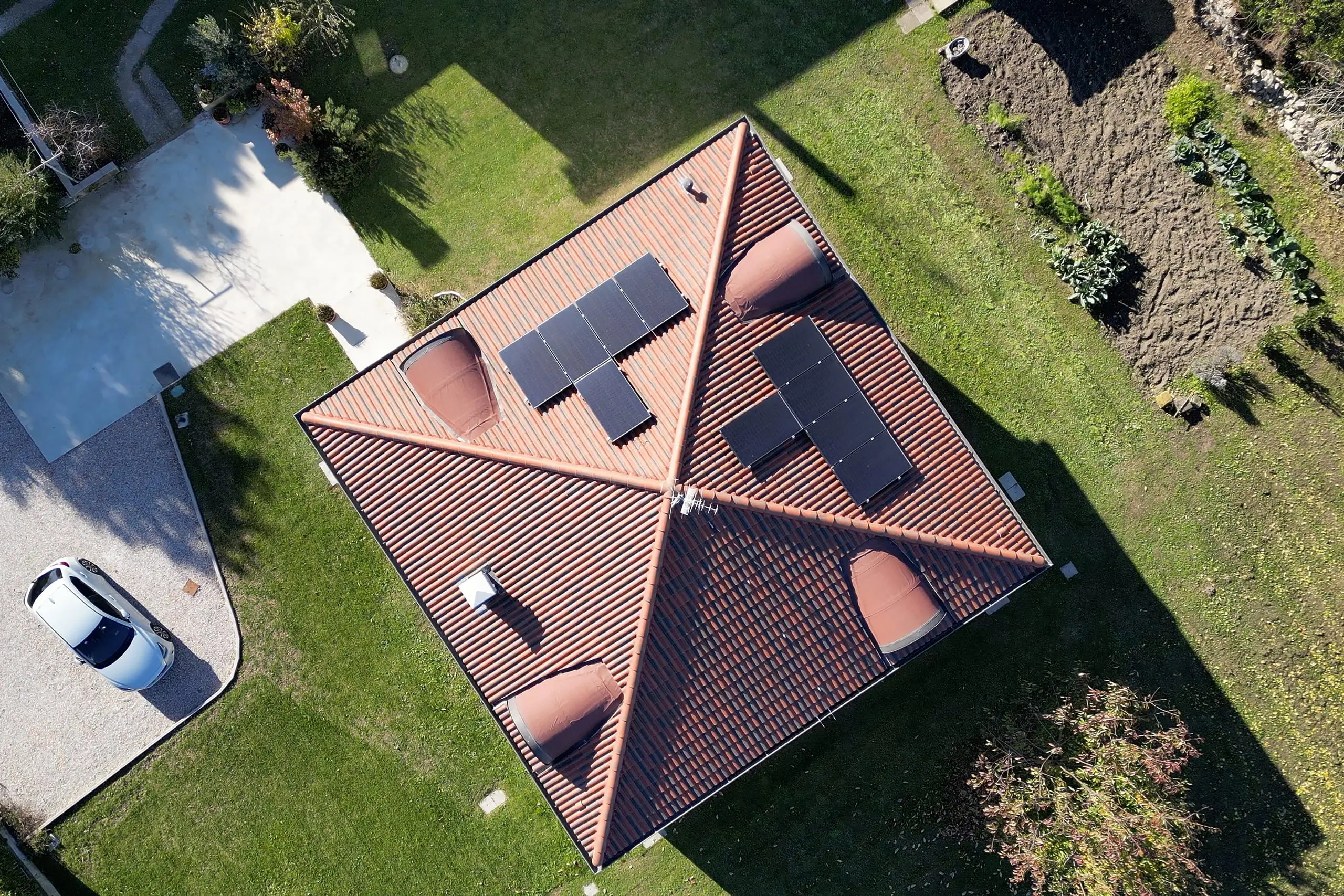 Questa casa si distingue per il suo tetto a padiglione dal design curato ed elegante, arricchito da volte in muratura realizzate su ogni lucernaio, una per ciascuna falda. La perfetta simmetria tra le volte e le aperture dona equilibrio architettonico e favorisce una diffusione uniforme della luce naturale all’interno degli ambienti.